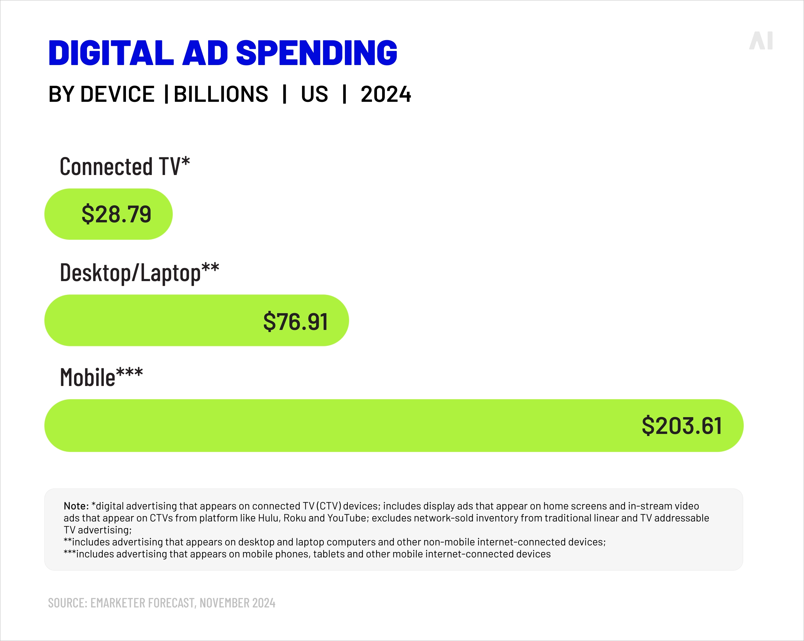 ⚡ This channel is massive—the U.S. mobile advertising market was expected to surpass $200 billion in 2024.