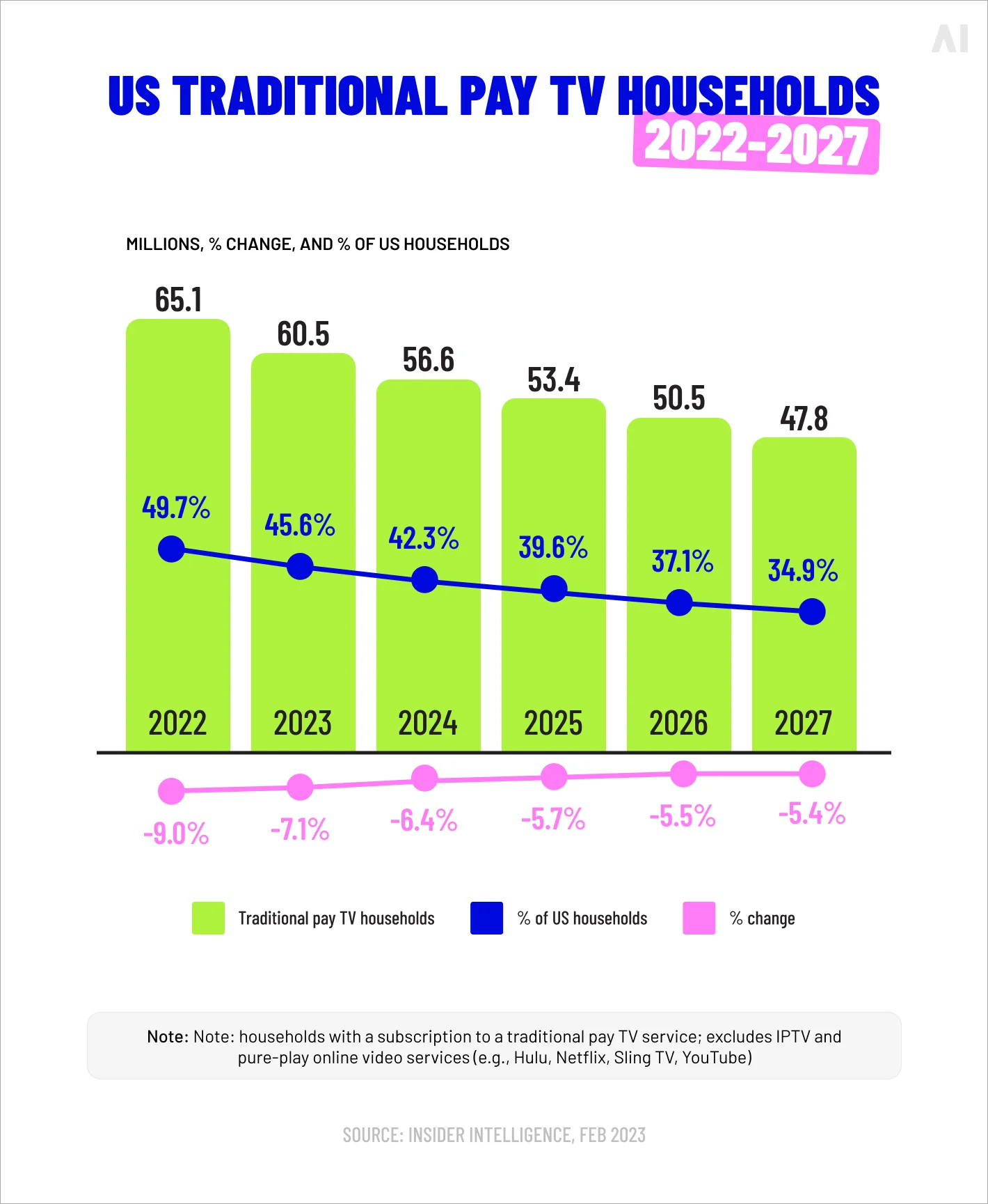 Cord-cutting is surging: 233.9 million people, or 68.4% of the population, had already made the switch in 2024.