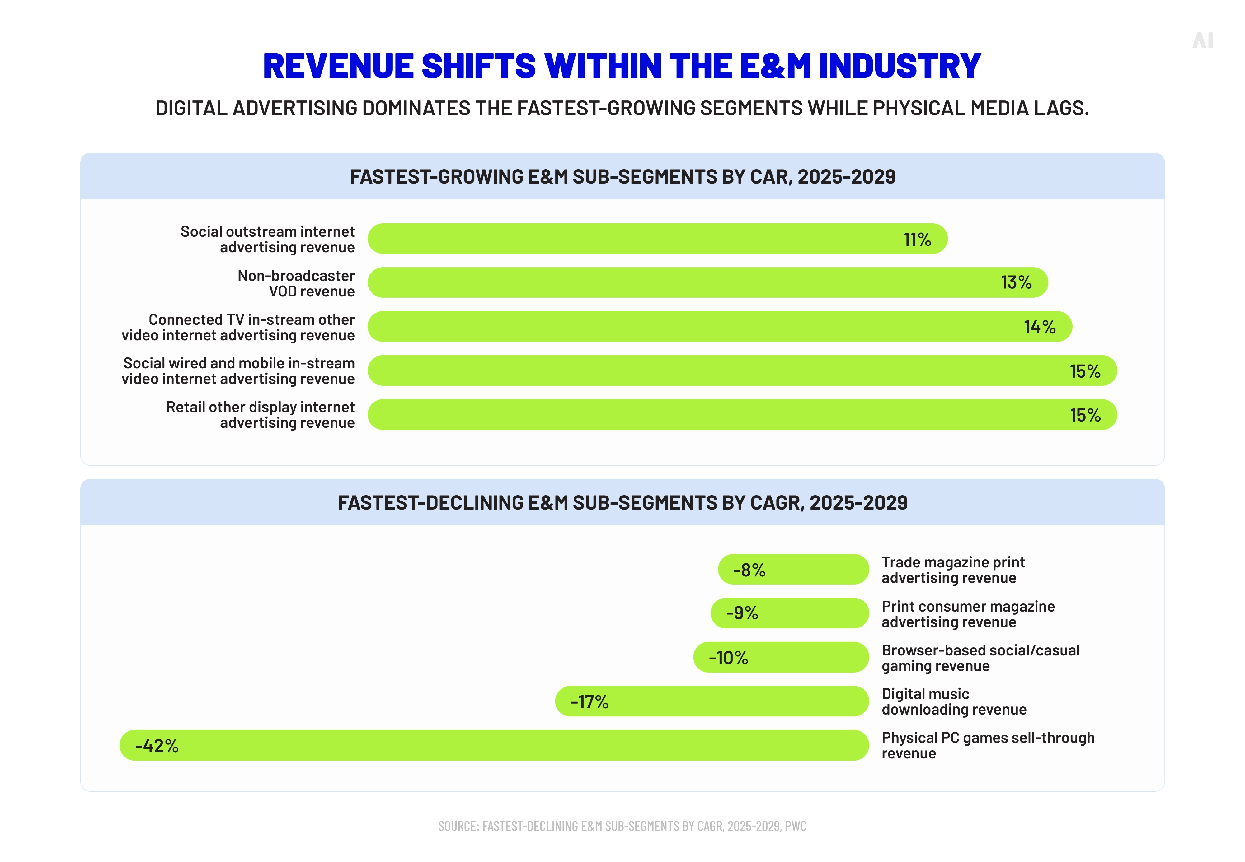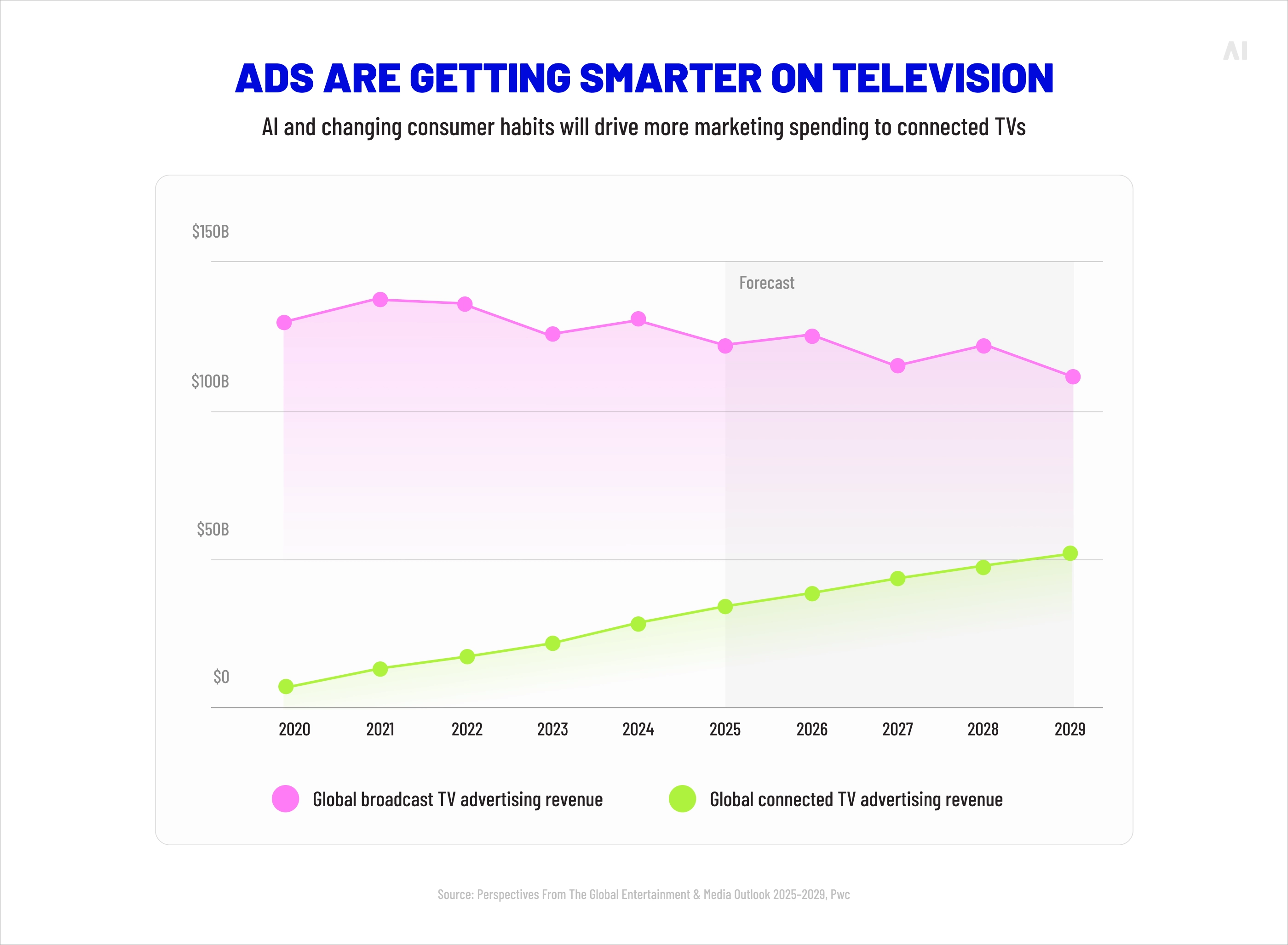 Connected TV is reshaping video advertising. The IAB predicts digital video will capture nearly 60% of total TV/video ad spend in 2025, up from roughly 30% five years earlier. CTV ad spend is projected to grow from $20.3 billion in 2024 to $26.6 billion in 2025. GroupM expects streaming TV revenue growth of 12.9% in 2025 and forecasts CTV will overtake linear TV revenue by 2029. This shift requires programmatic infrastructure that didn't exist a decade ago.