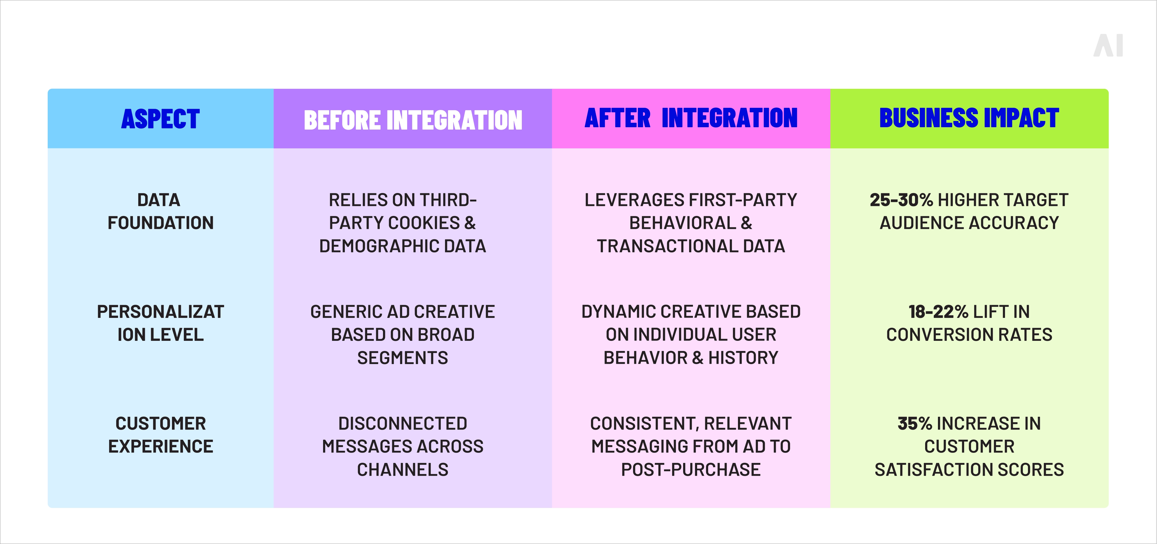 This precision leads to ads that feel less like interruptions and more like valuable recommendations. Companies that leverage this integrated approach for personalization see a 15-20% increase in sales conversion rates and can reduce customer acquisition costs by up to 30%, as budgets are focused on audiences with the highest propensity to engage and convert.