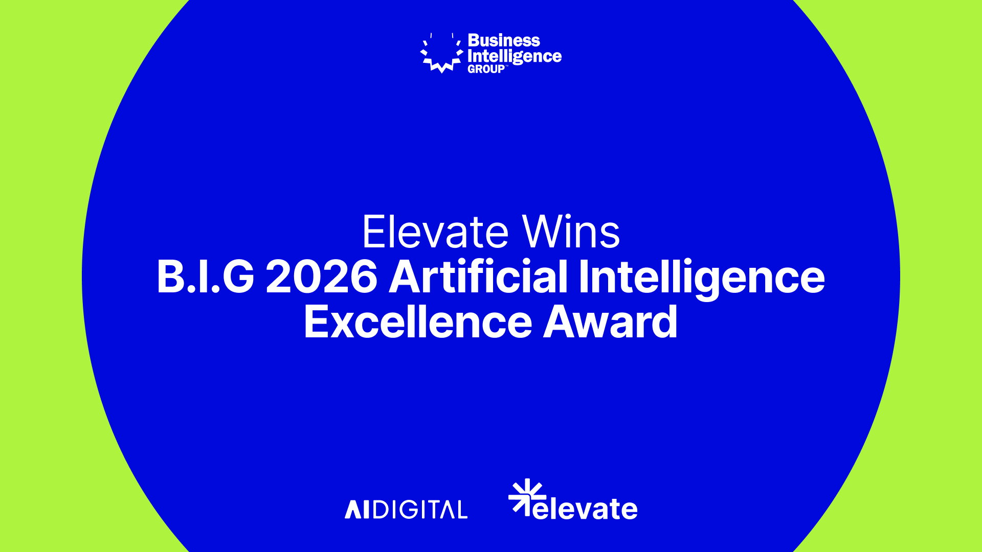 MIAMI- FL – March 24 2026 – AI Digital, the AI-native consultancy, today announced its AI-powered marketing intelligence platform Elevate has been named a winner in the 2026 Artificial Intelligence Excellence Awards, in the category of Analytics. Presented by the Business Intelligence Group, the award recognizes organizations, products, teams, and individuals that are applying artificial intelligence in ways that drive real, measurable impact.