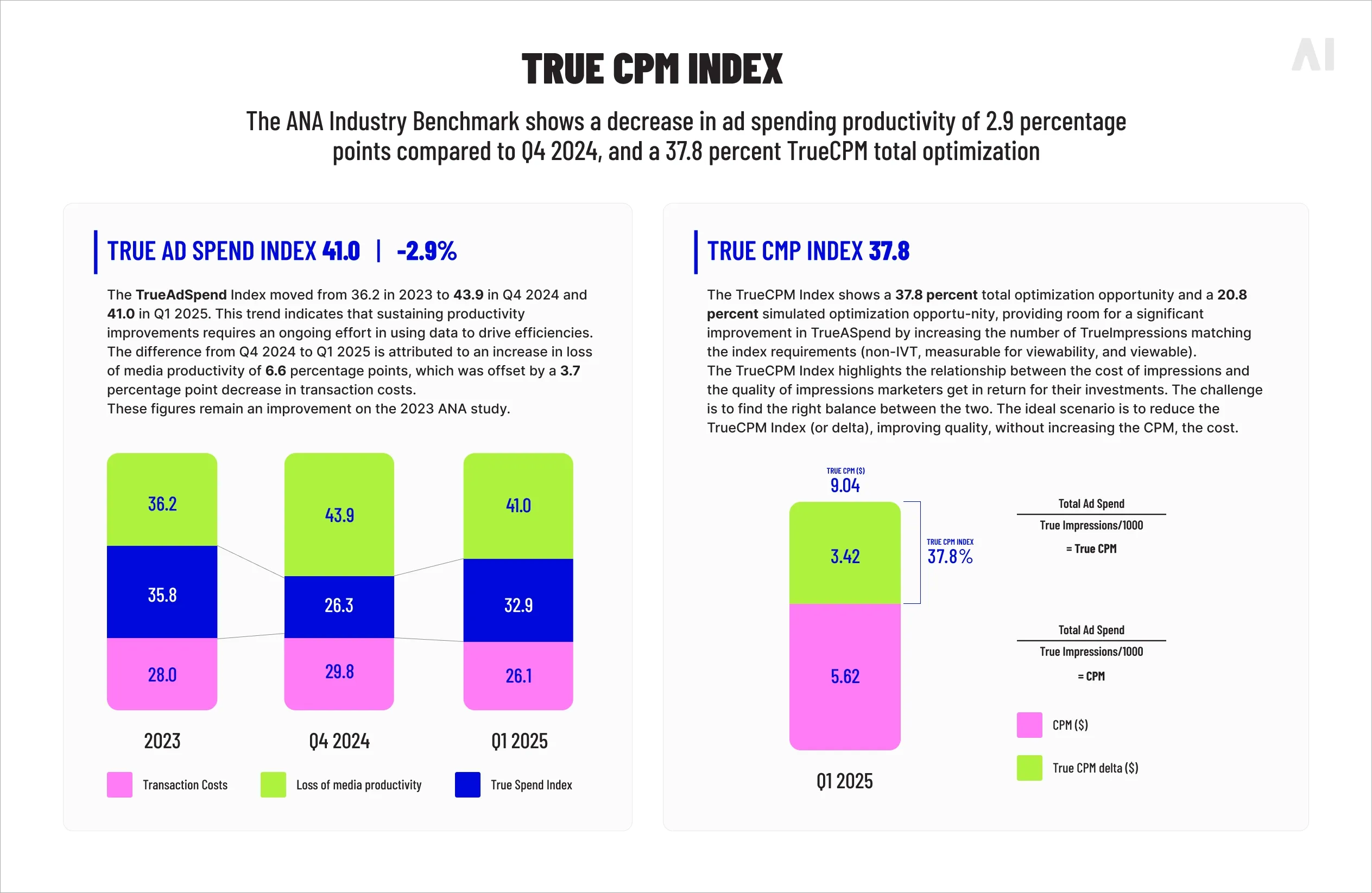 The ANA’s Programmatic Transparency Benchmark (Q1 2025)found only 41% of budgets reached effective impressions—up from 36% in 2023, but still a mandate to keep squeezing waste with better decisioning and supply paths.