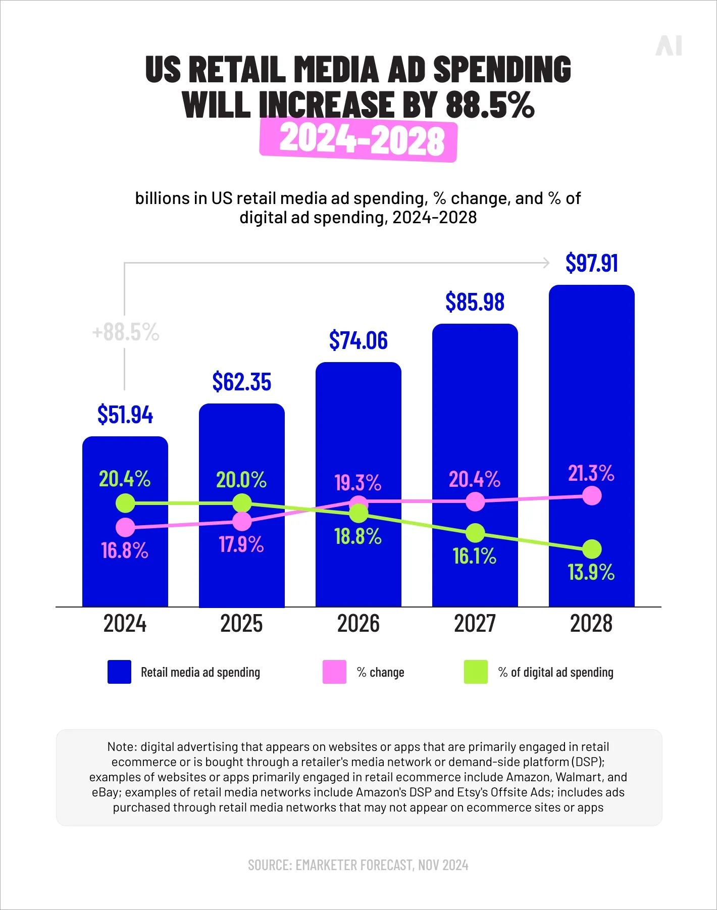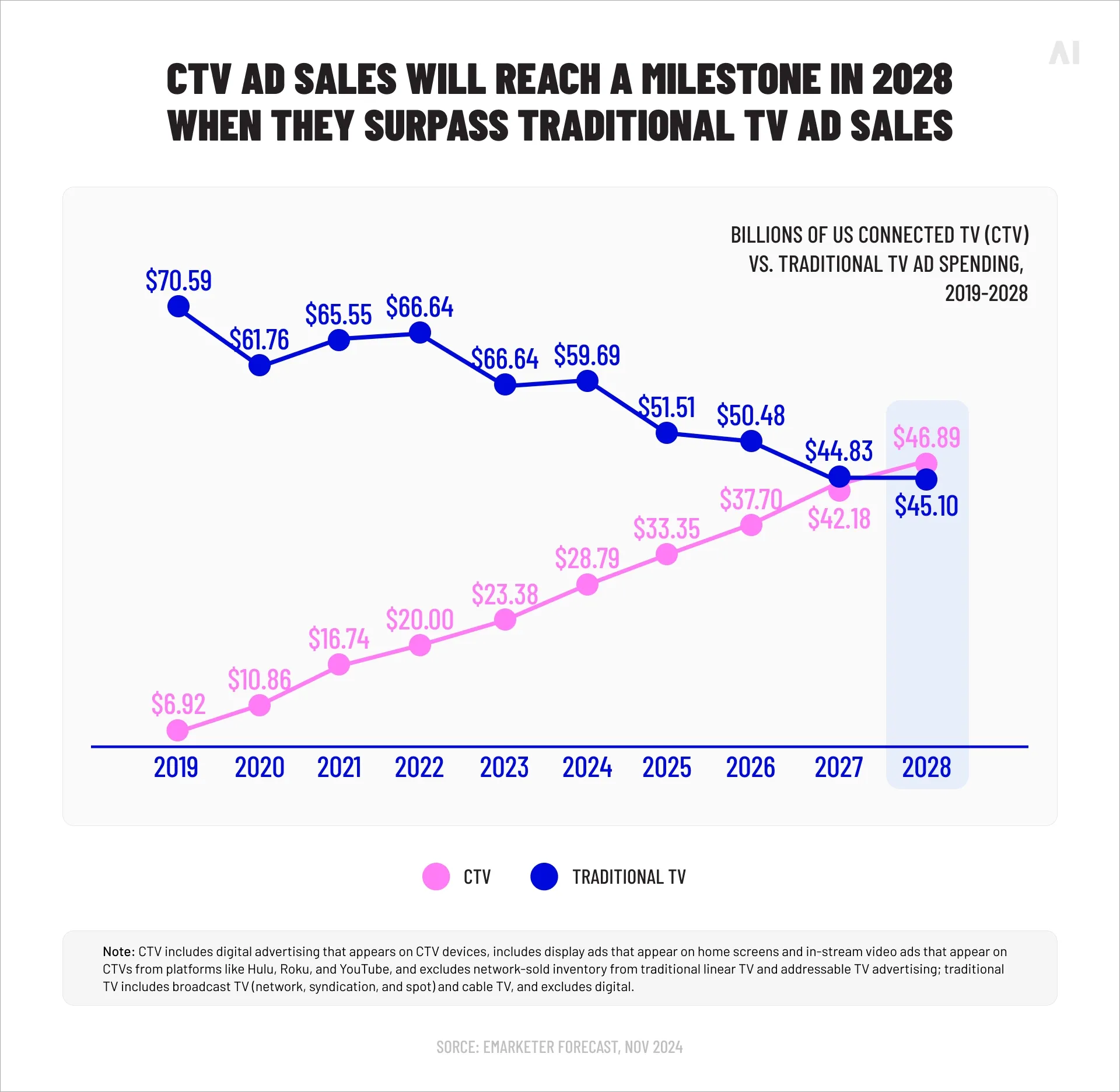The channel’s momentum is clear: eMarketer forecastsUS CTV ad spending of $33.35B in 2025, up 15.8% YoY, with continued double-digit growth through the forecast horizon.
