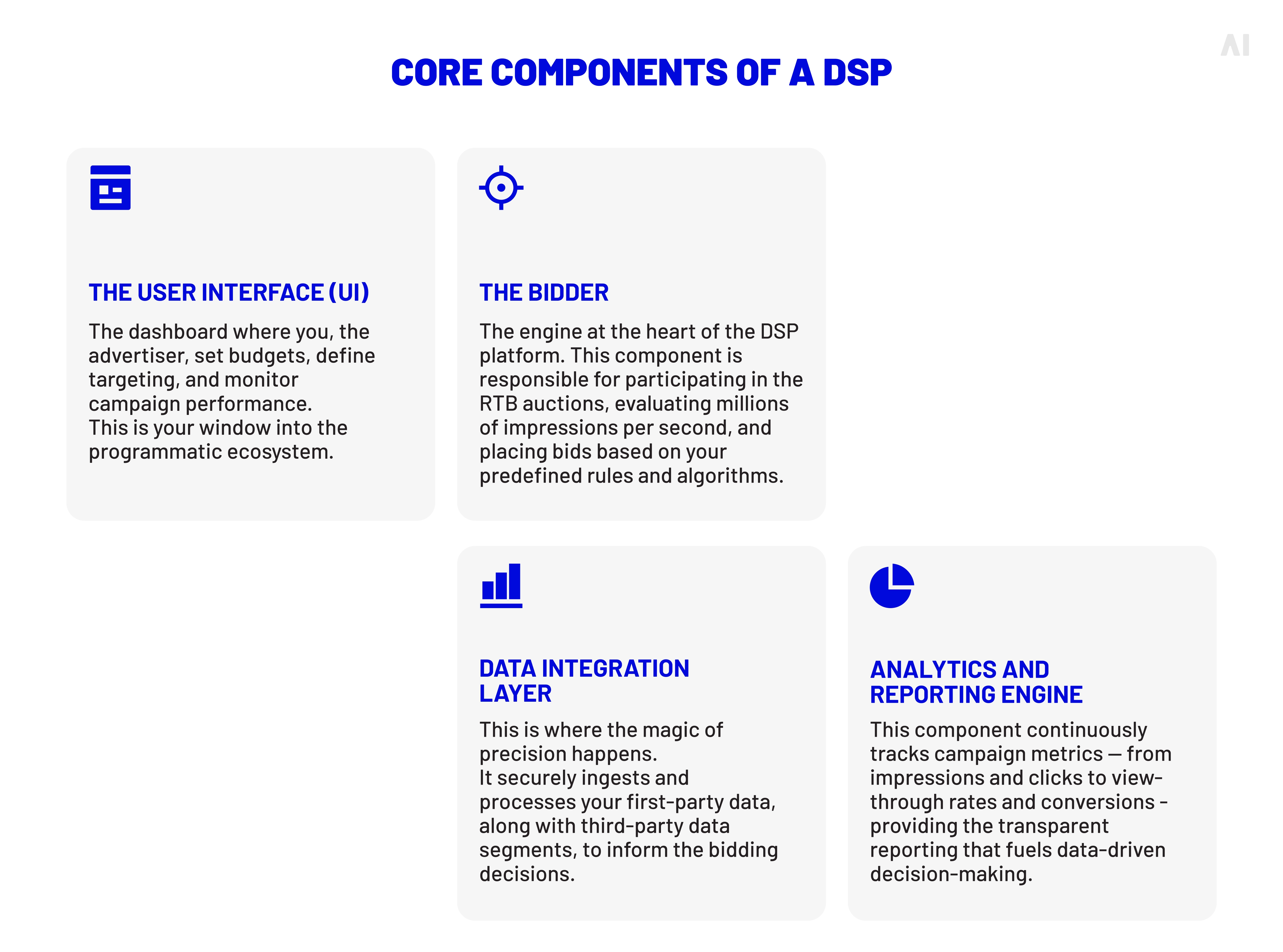 A demand-side platform may seem like a single tool, but it's actually a powerful stack of integrated technologies. Knowing its core components demystifies how DSP works and reveals the source of its efficiency.
