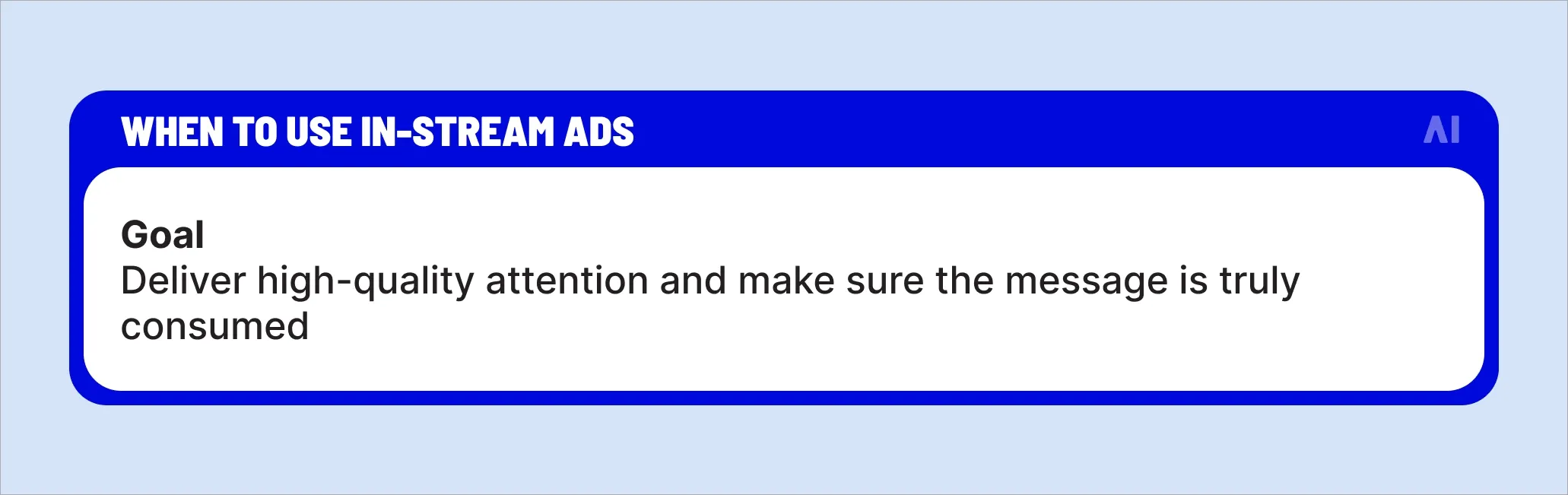 Choose in-stream video ads when your campaign depends on brand lift, recall, or storytelling. These formats work because users have already opted into watching video content, creating a stable, sound-on environment where messaging can unfold over time.