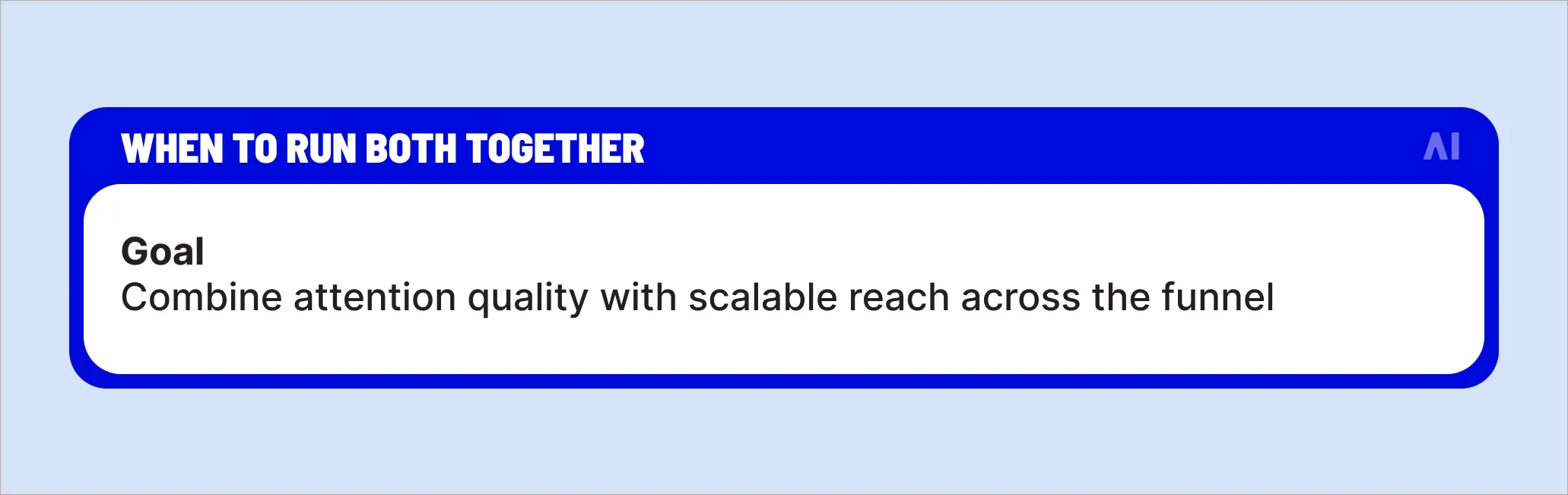This is the most actionable part of the in-stream vs out-stream decision. The format you choose should follow the goal first, then dictate creative choices and KPIs not the other way around.