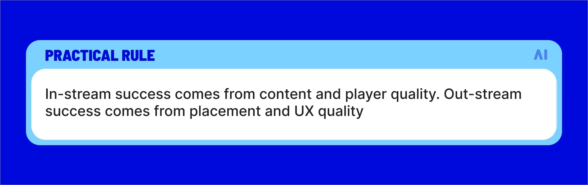 💡When executed poorly—small players, aggressive autoplay, cluttered pages—they suffer from low engagement and unreliable signals. In other words, in-stream vs out-stream video isn’t a quality hierarchy; it’s a trade-off between intentional viewing and opportunistic exposure.
