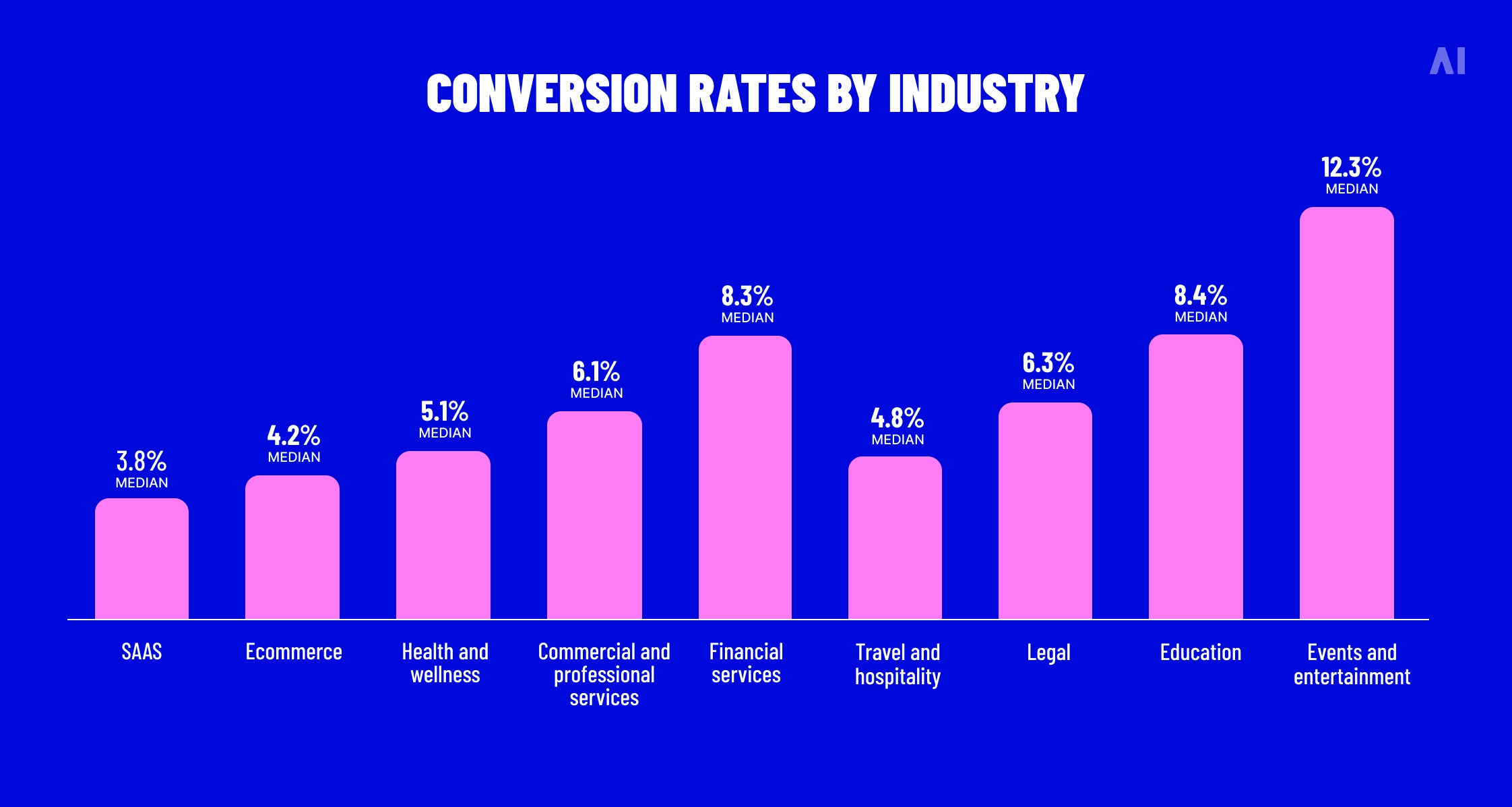 Recent analyses of hundreds of millions of visits put median landing-page conversion around 6–7%, highlighting the headroom available with disciplined testing. Unbounce