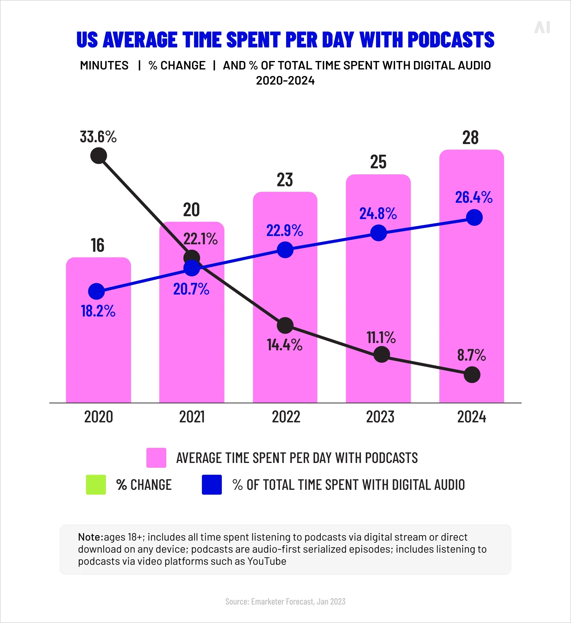 US average time spent per day with podcasts (Source)