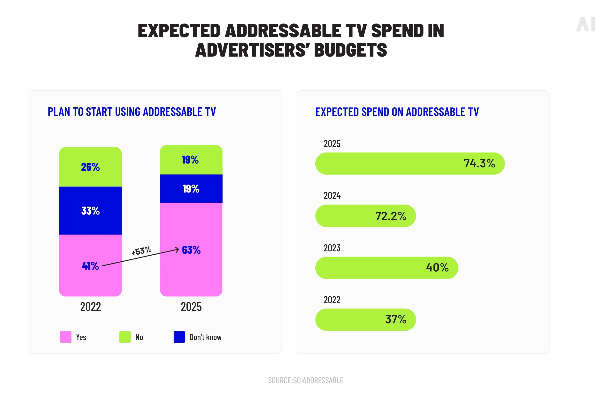 Expected addressable TV spend in advertisers’ budgets (Source)