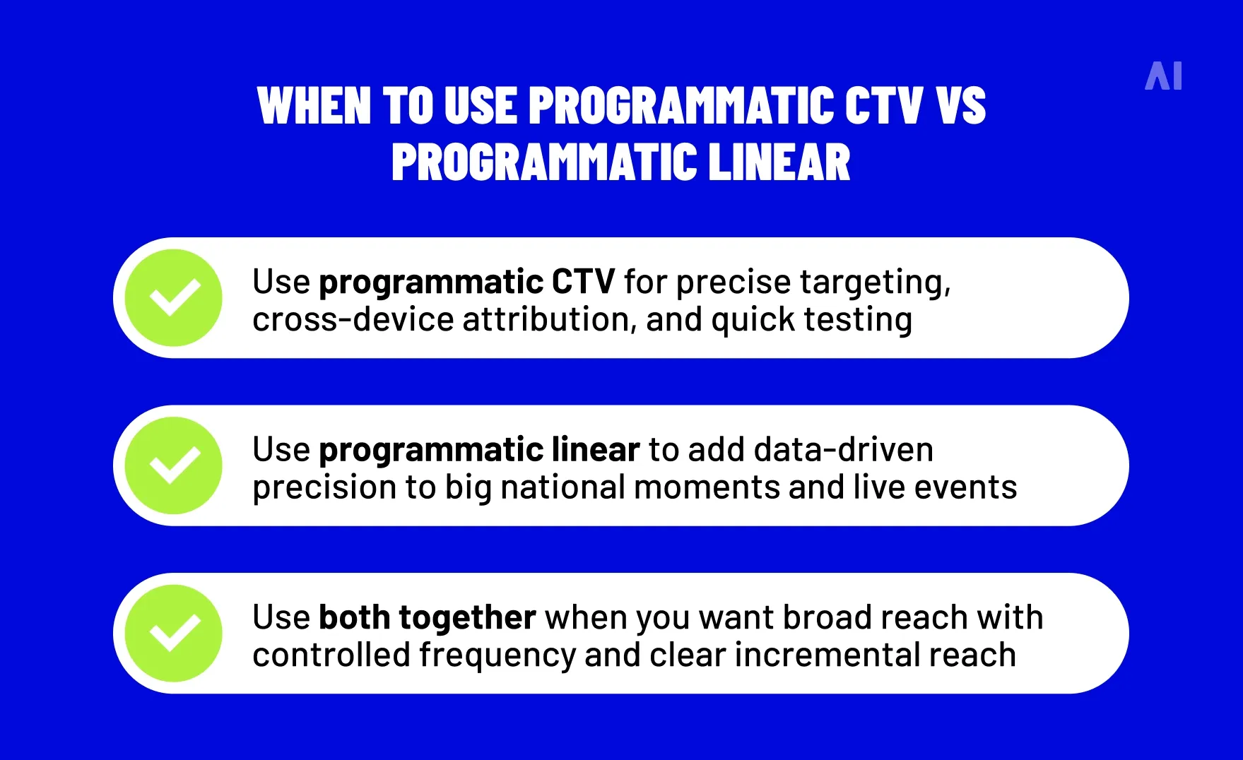 💡 If you want a broader primer on TV as a channel before diving into the programmatic side, start with AI Digital’s overview of TV advertising, then come back here for the more advanced controls.