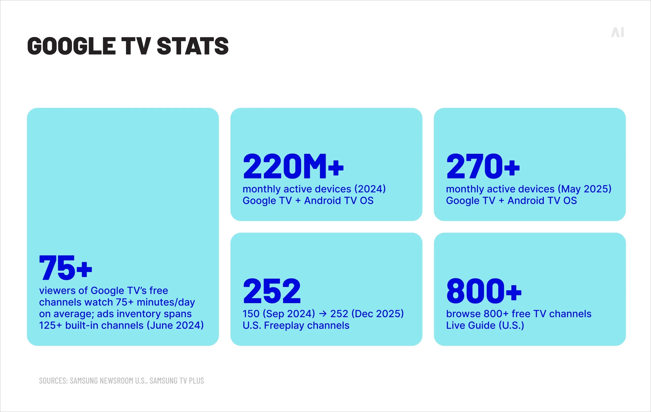 Google reported it is “bringing better TV to 270 million monthly active Google TV and other Android TV OS devices,” underscoring how broadly Android TV OS/Google TV spans OEMs and markets.