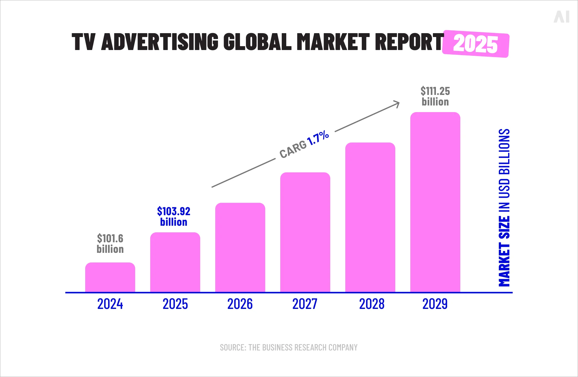 The television advertising industry faces a paradox in 2025. Traditional TV ad spending drops nearly 5% annually in major markets, yet the broader TV/video advertising sector grows steadily, projected to reach $103.92 billion globally this year.